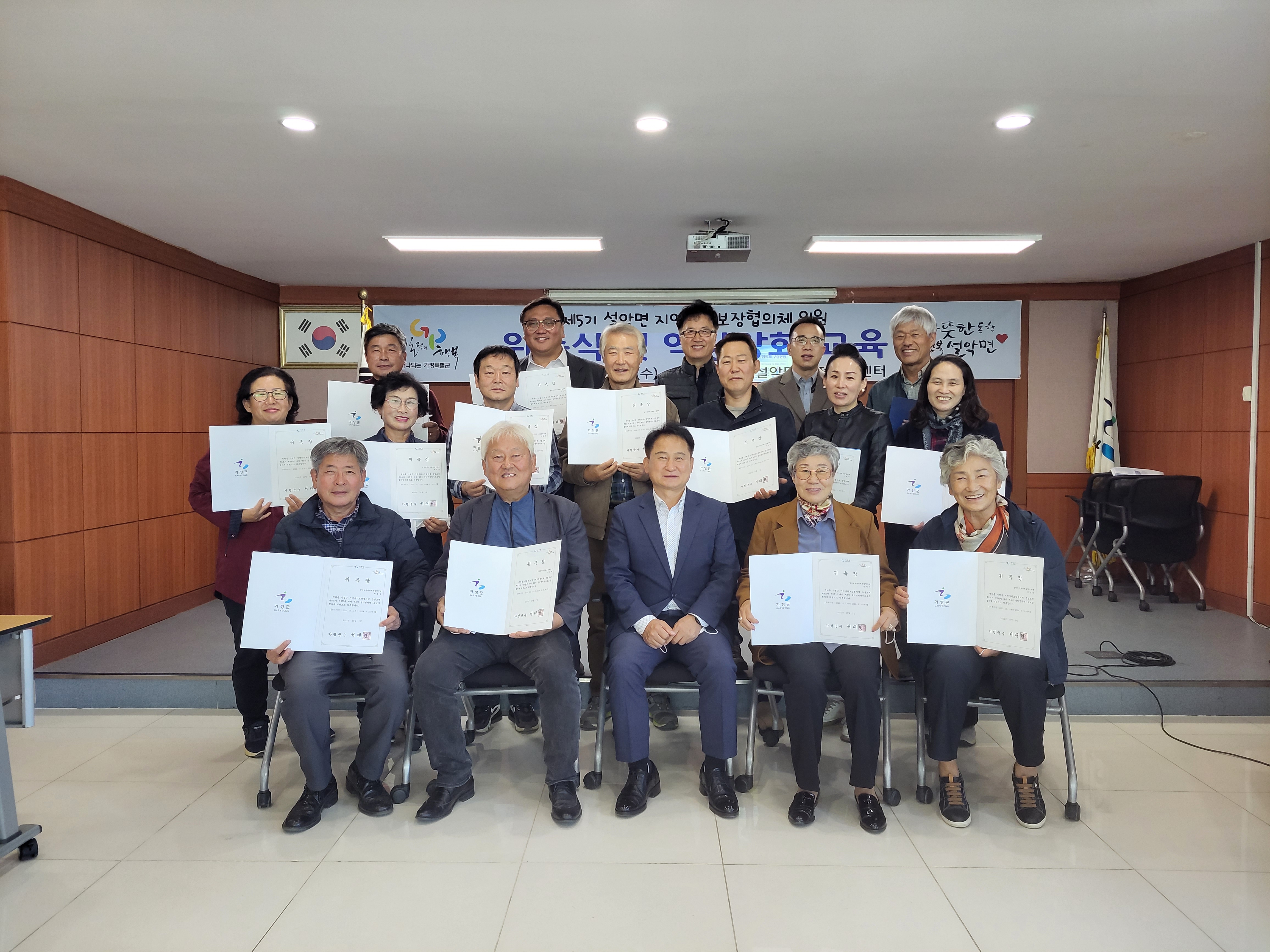 설악면 지역사회보장협의체는 22년 10월 19일(수) 설악면 행정복지센터 2층 대회의실에서 제5기 설악면 지역사회보장협의체 위촉식을 개최하고, 「22년 희망복지 아카데미 교육」으로 역량강화 교육을 실시했다.