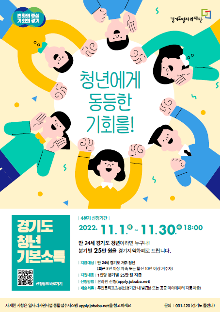 가평군은 청년의 사회적 기본권 보장을 지원하는 경기도형 기본소득제도 ‘청년기본소득’ 4분기를 11월 1일(화)부터 11월 30일(수) 18시까지 온라인으로 접수한다고 밝혔다.