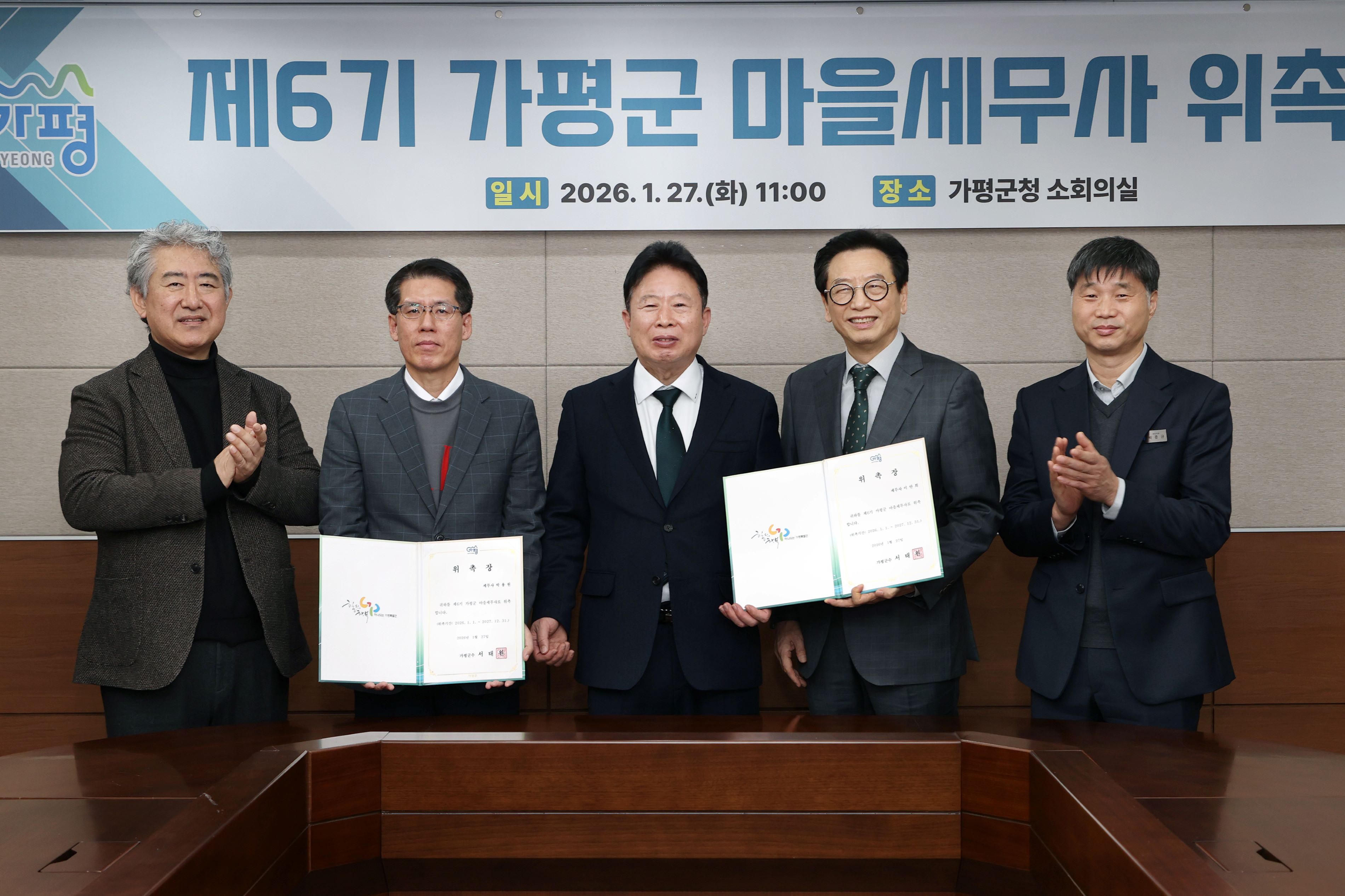 가평군은 이 제도를 계속 운영하기로 하고 27일 가평군청에서 2026년부터 2027년까지 활동할 제6기 마을세무사 2명을 위촉했다. 이에 따라 앞으로 2년간 군민을 대상으로 지방세와 국세 관련 무료 세무 상담 서비스를 이어가게 된다.